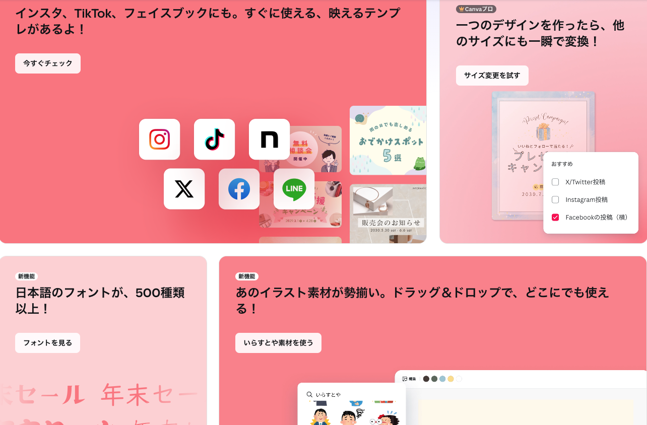 Canvaには、様々な用途に合わせた豊富なテンプレートが用意されています。