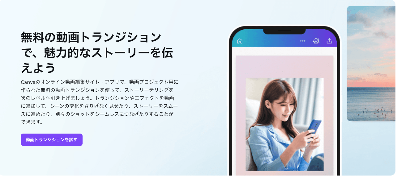 Canvaは、トランジションだけでなく、動画編集に必要な機能がすべて揃ったオンラインツールです。